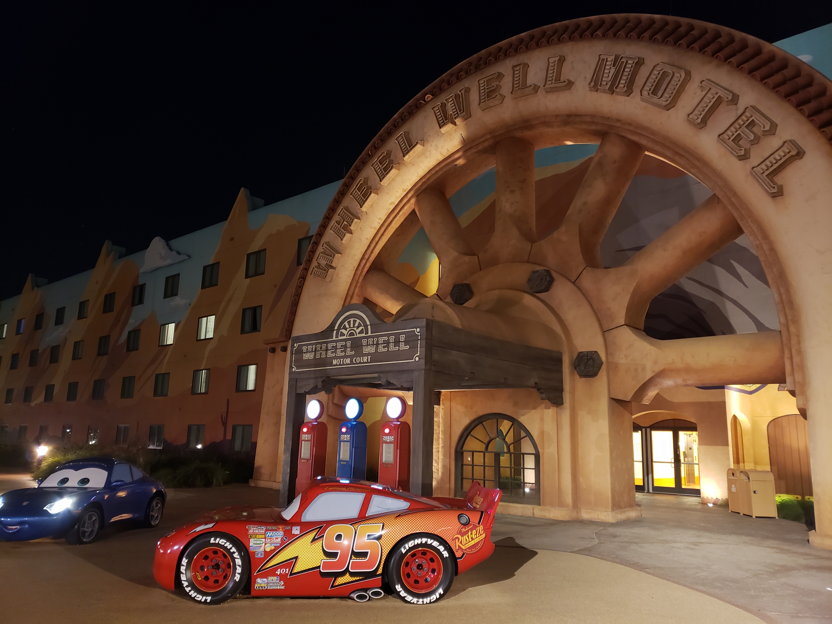 Speaking of California Adventure, Cars Land was decorated for the holidays too. I love every little thing about Cars Land and their holiday spin is just icing on the cake. Even this little light set up here had everything ‘plugged’ in via jumper cables to a car battery! Mater’s Junkyard Jamboree ride turns into Mater’s Jingle Jamboree with holiday music and a haul-iday tractor spin. Gotta love that ride, even if you and your riding companion squish each other with every turn.