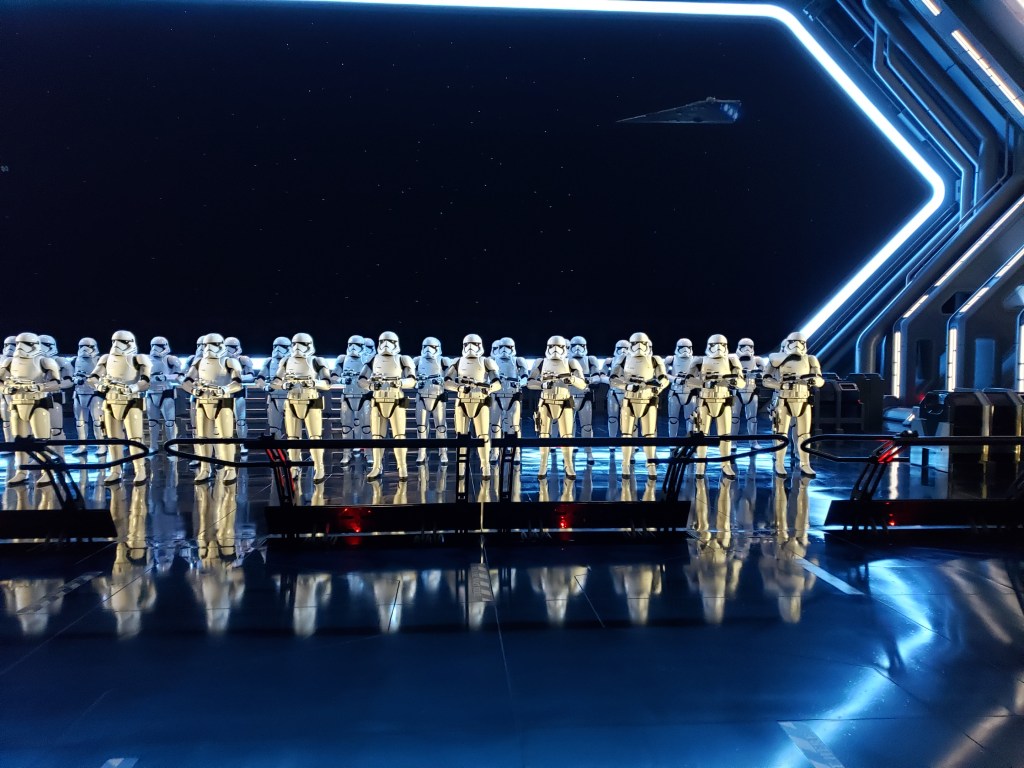While Mansion will always reign supreme as the top attraction for me, I have to say that the new Web Slingers: A Spiderman Adventure ride in California Adventure is tough competition. Wait times at Disneyland are a lot different than World and the longest waits we experienced were for these two attractions. There were some longish waits for Radiator Springs Racers and Rise of the Resistance, but we’ve done those before so they weren’t priorities on this trip. Disney’s new Genie+ service hadn’t started yet when we visited Disneyland, so all rides were just regular standby lines for entry. We waited for Haunted Mansion once around 45 minutes (20 minutes the second time and walked on the third time) and 80 minutes for Web Slingers. To get me to wait 80 minutes in line for an attraction is a pretty big feat but I wanted to ride this new ride so bad that I made the commitment. Let me tell you, those 80 minutes were well spent! We loved every minute of this ride and I would have jumped right back on it again if I could’ve. So interactive, incredible technology, and such a fun concept overall. I’m not giving any spoilers other than to say, if you play the game well on this ride, your arms are going to be so tired! Spider-bot targets acquired! Oh and if you haven’t seen the new Spiderman movie, get out there and see it. Excellent flick!